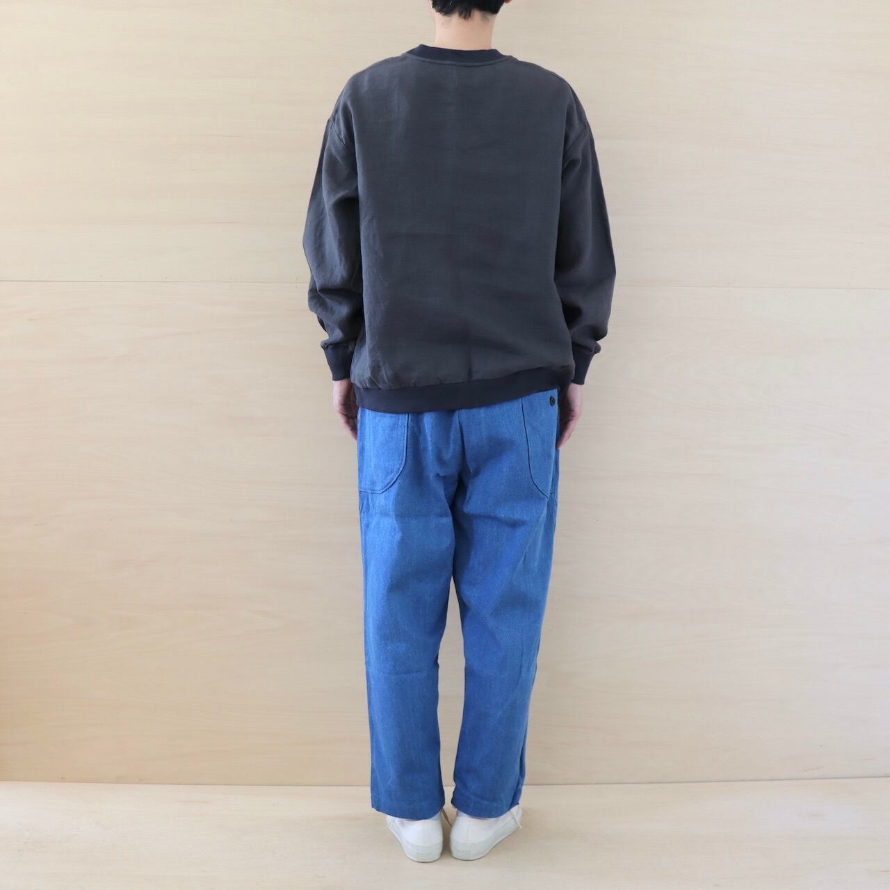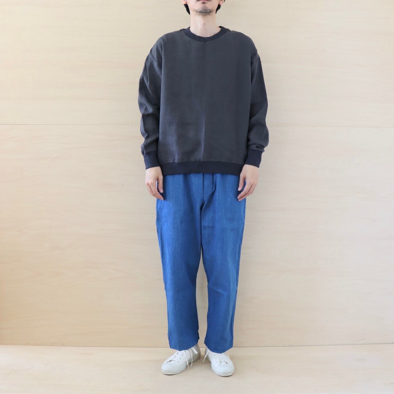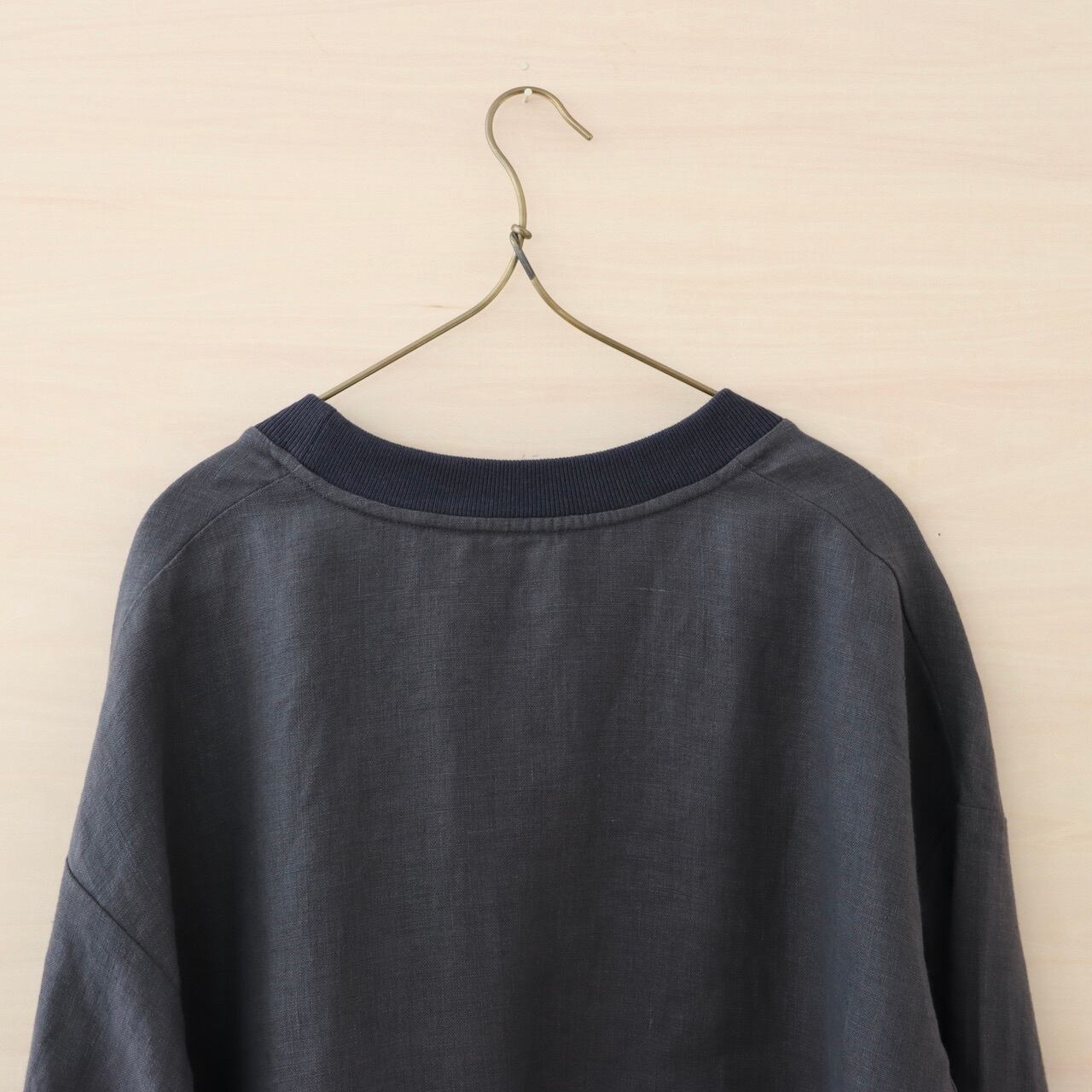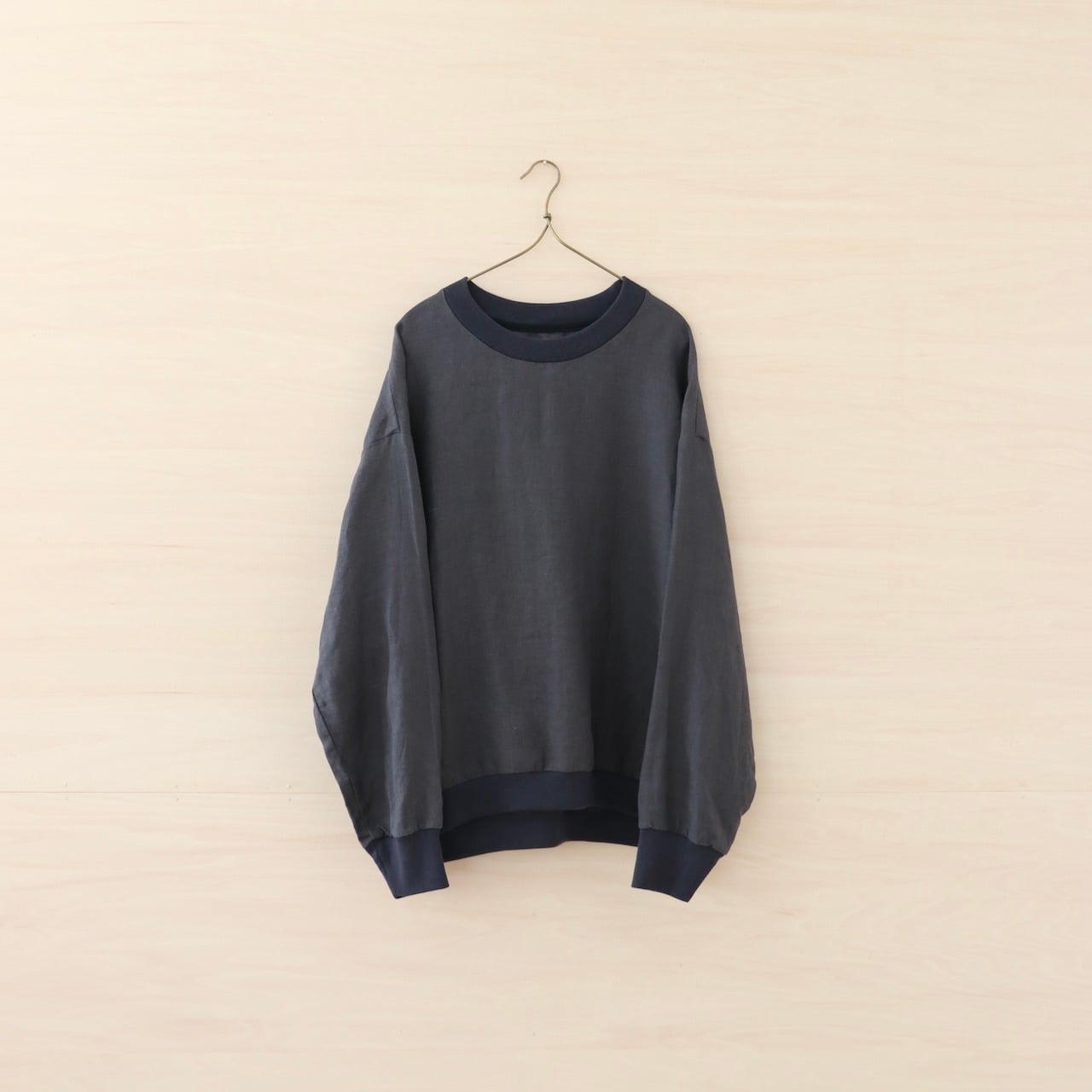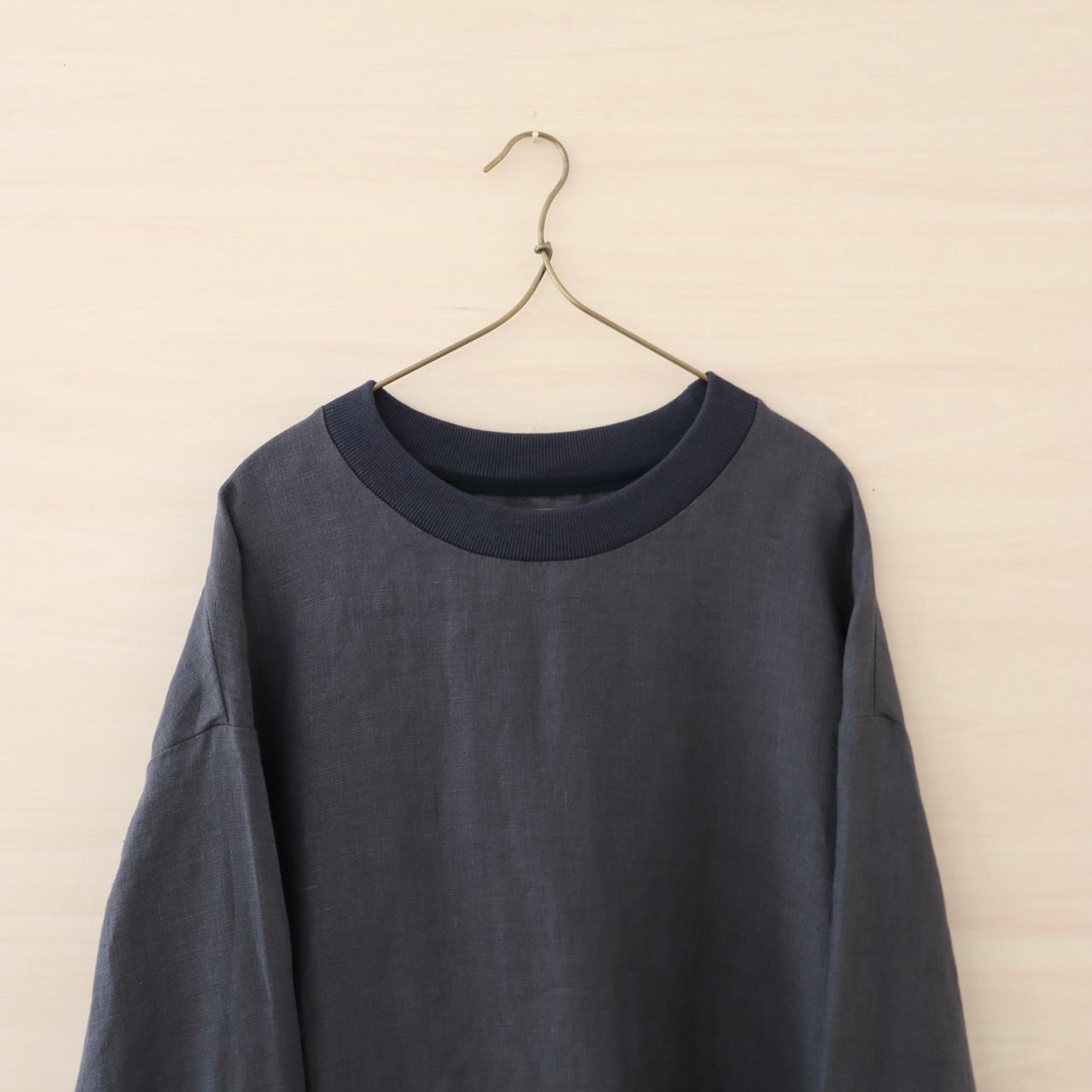 フレンチリネン生地を使って製作したゆったりとしたプルオーバー。通気性、速乾性に優れているリネンの特徴を活かして、スウェットのようにさっと着れる服をイメージして製作しました。夏のリネンTEEの続きで首まわりの他、袖と着丈もリブにしたことでよりスウェットのように仕上がっています。はじめリネン生地独特のザラつきや、かたさがありますが少しずつ柔らかくなり肌に馴染んでゆきます。生地表面の雰囲気もよくなってゆきますので経年変化を楽しんで育てて下さい。洗濯の際、色落ちがありますので白い物や他の物と一緒に洗わないで下さい。