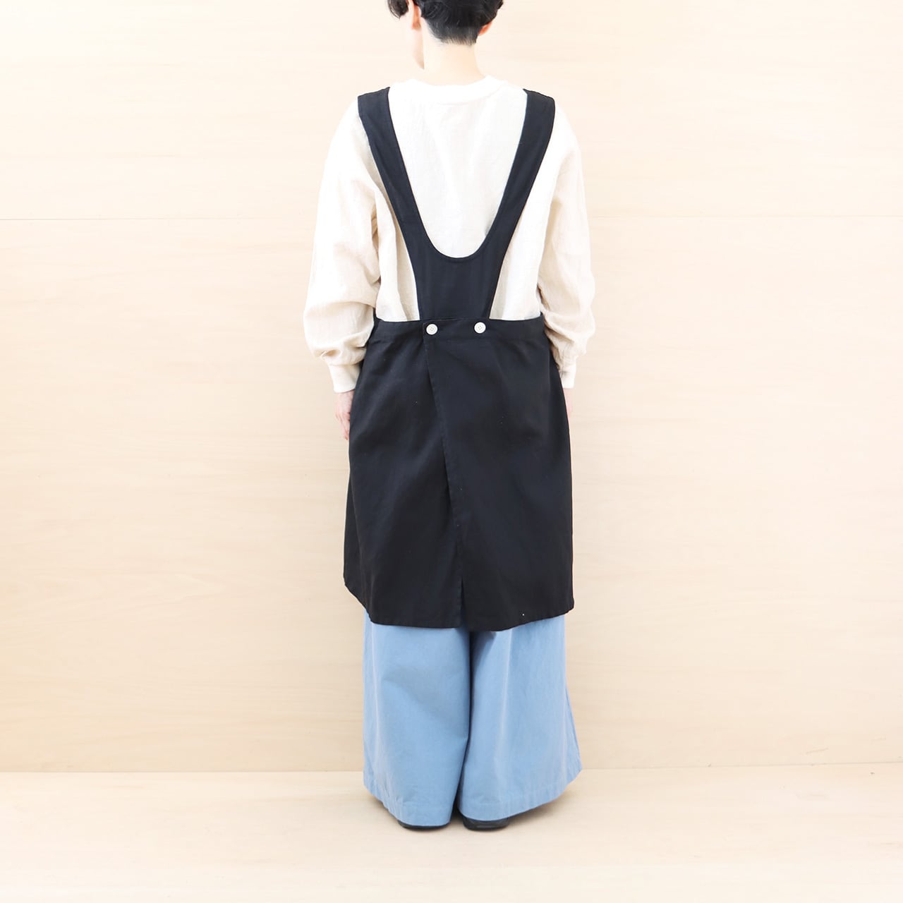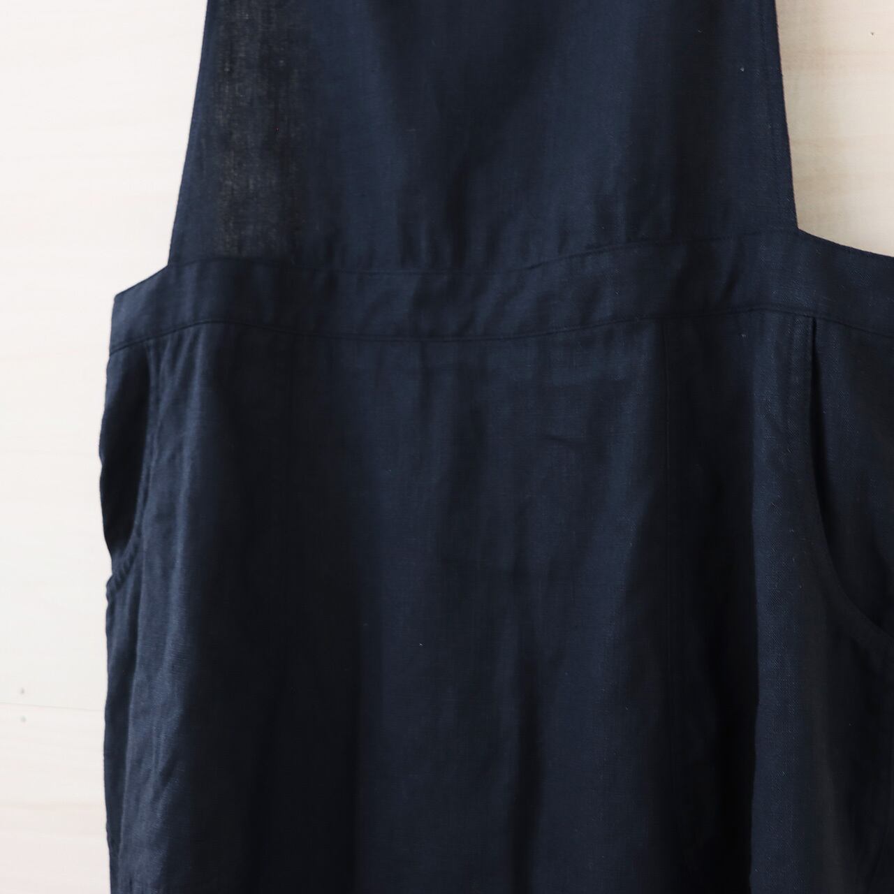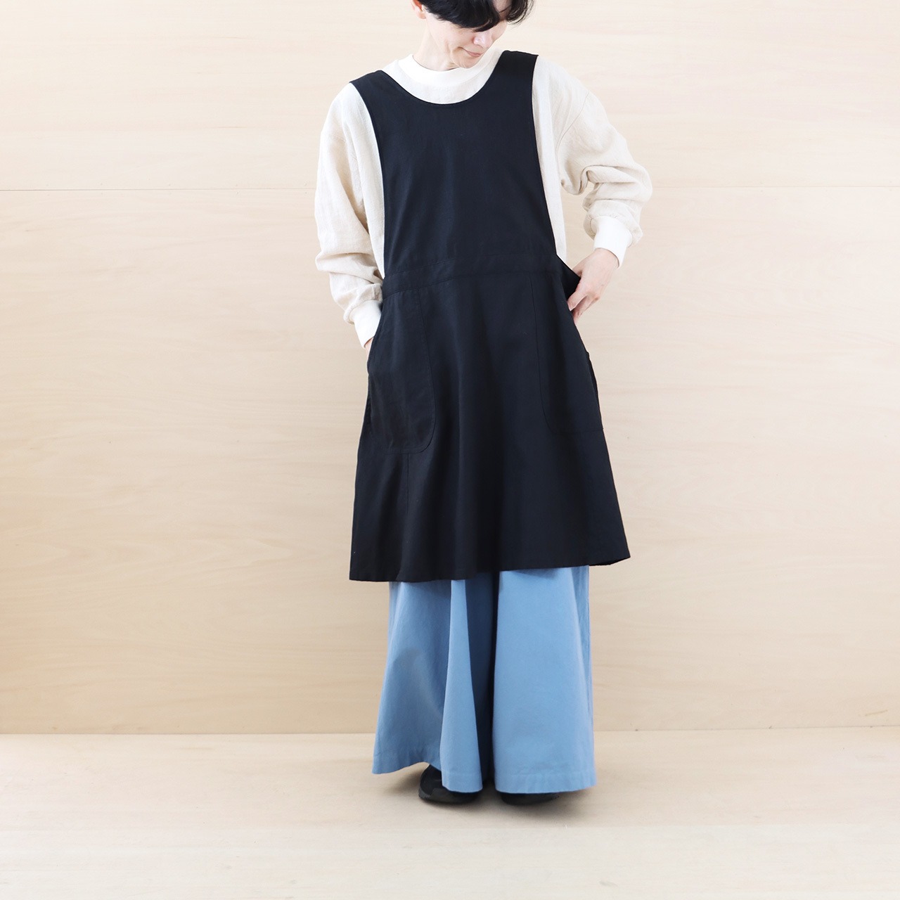 もともと、ワンピースのように長くてゆったり着られる、そんなエプロンにしたいと考えてきました。そのシルエットがとても好きで、hanaエプロンらしさのひとつになっています。