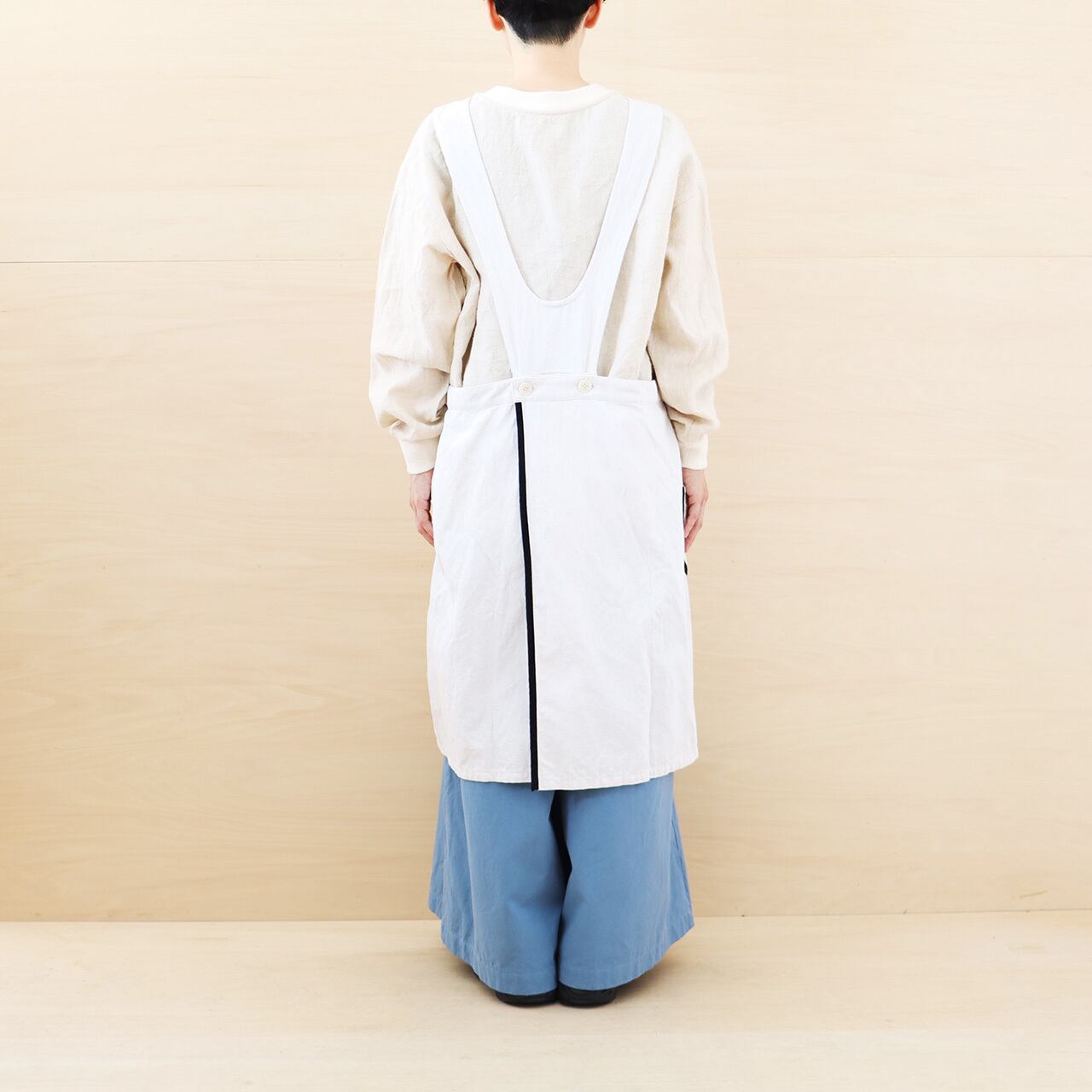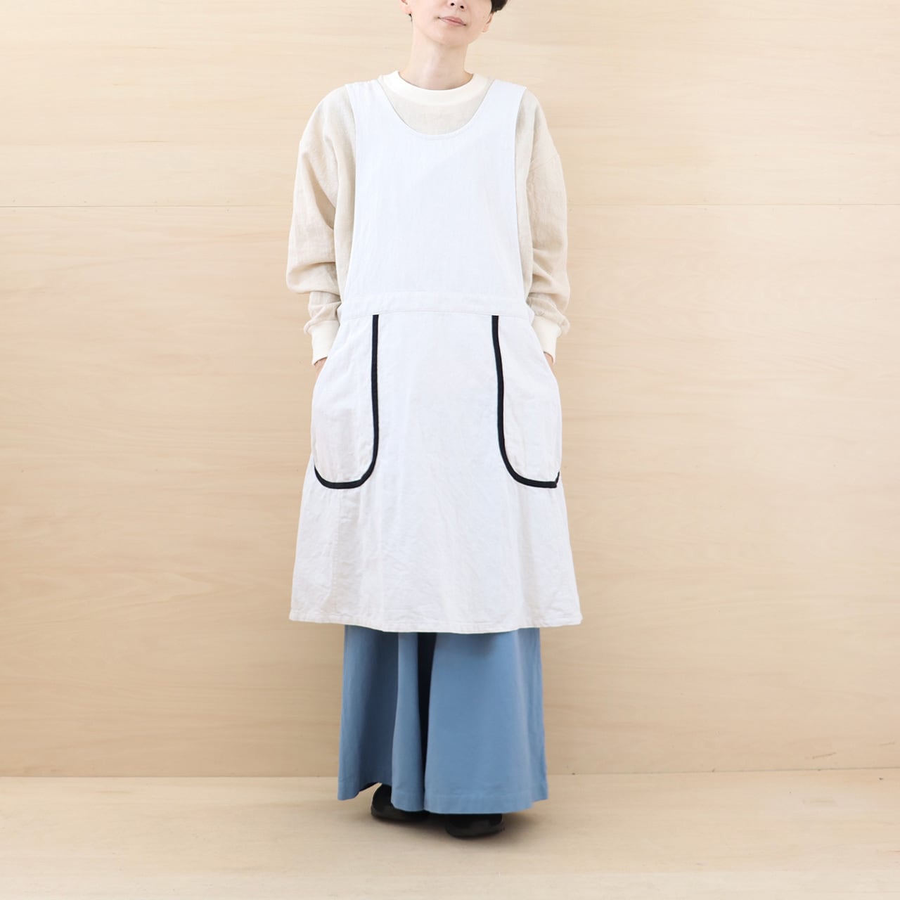 もともと、ワンピースのように長くてゆったり着られる、そんなエプロンにしたいと考えてきました。そのシルエットがとても好きで、hanaエプロンらしさのひとつになっています。