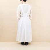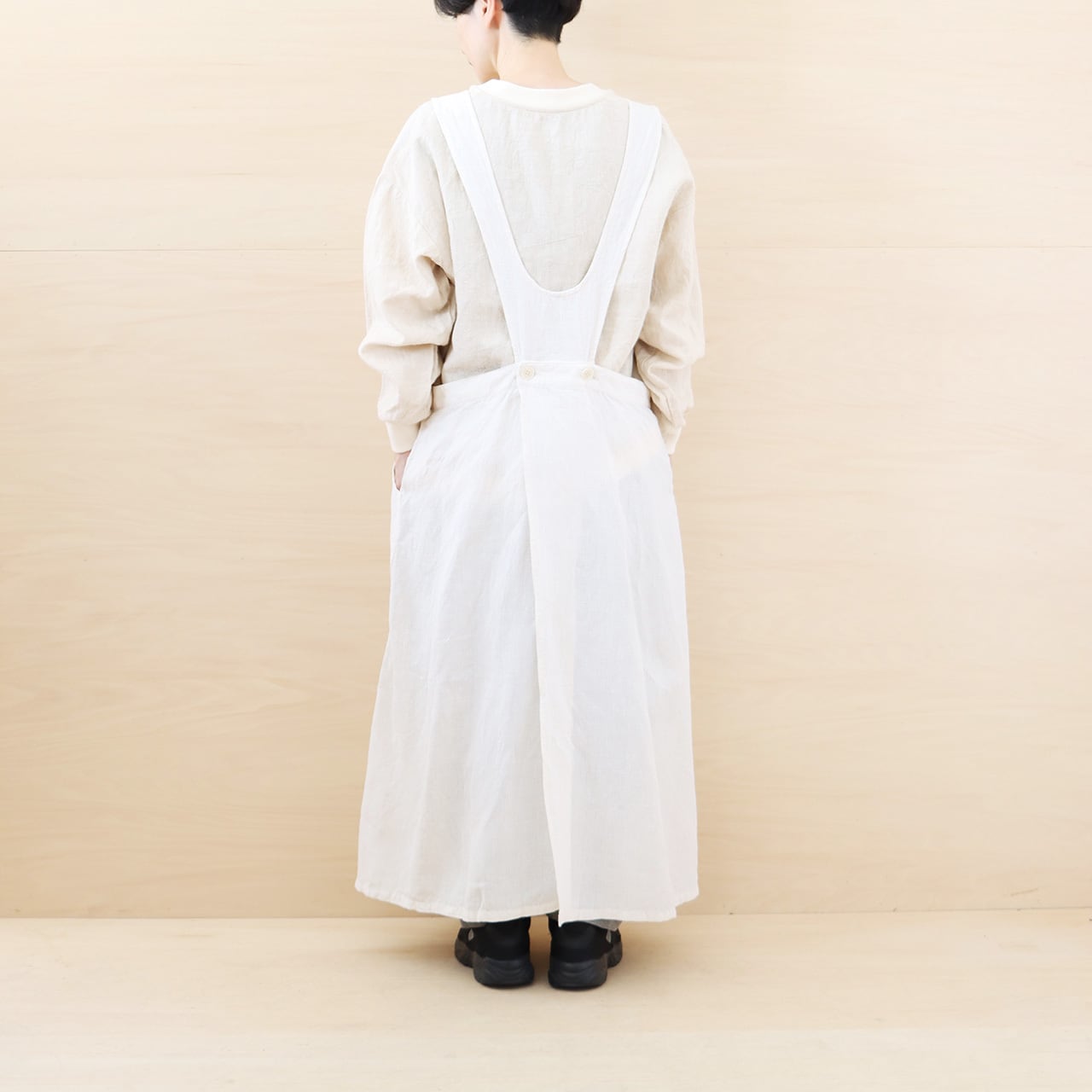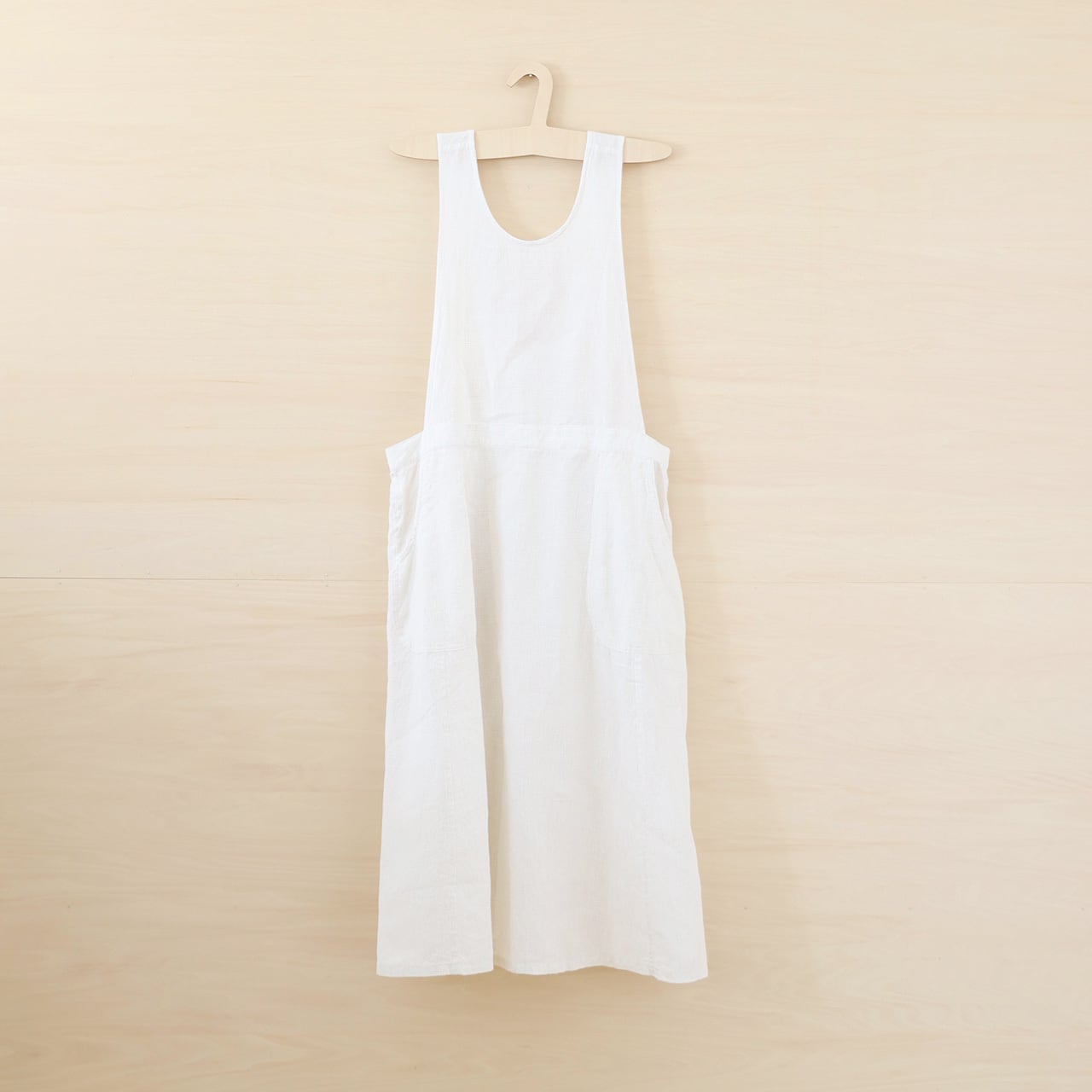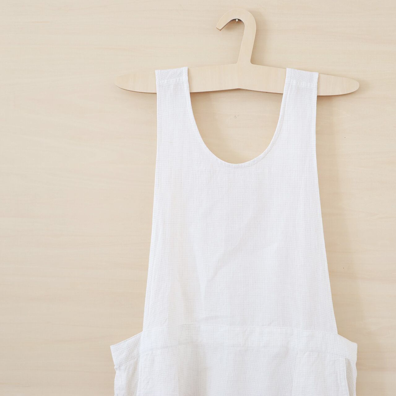 チェコ軍のメディカルエプロンをベースに作ったエプロンです。チェコの多くの女性が使用したことを想像し、チェコの女性の代表的な名前の一つ「hana」をこのエプロンに名付けました。ミリタリーの良いところは機能性から生まれるラインの美しさ。随所に工夫がちりばめられています。いいところはそのままに、新たにパターンをつくりました。(デットストックを調べていくと、サイズは大小様々あり、チェコの女性はかなり大柄な方がいたことを連想させてくれます。)あえてオーバーサイズでつくり、ワンピースのようにゆったりと着られるようになっています。また、重ね着しても楽しめそうです。ウエストの左右にはボタンホールが2つずつあり、肩紐部分についているボタンに留める仕様となっています。