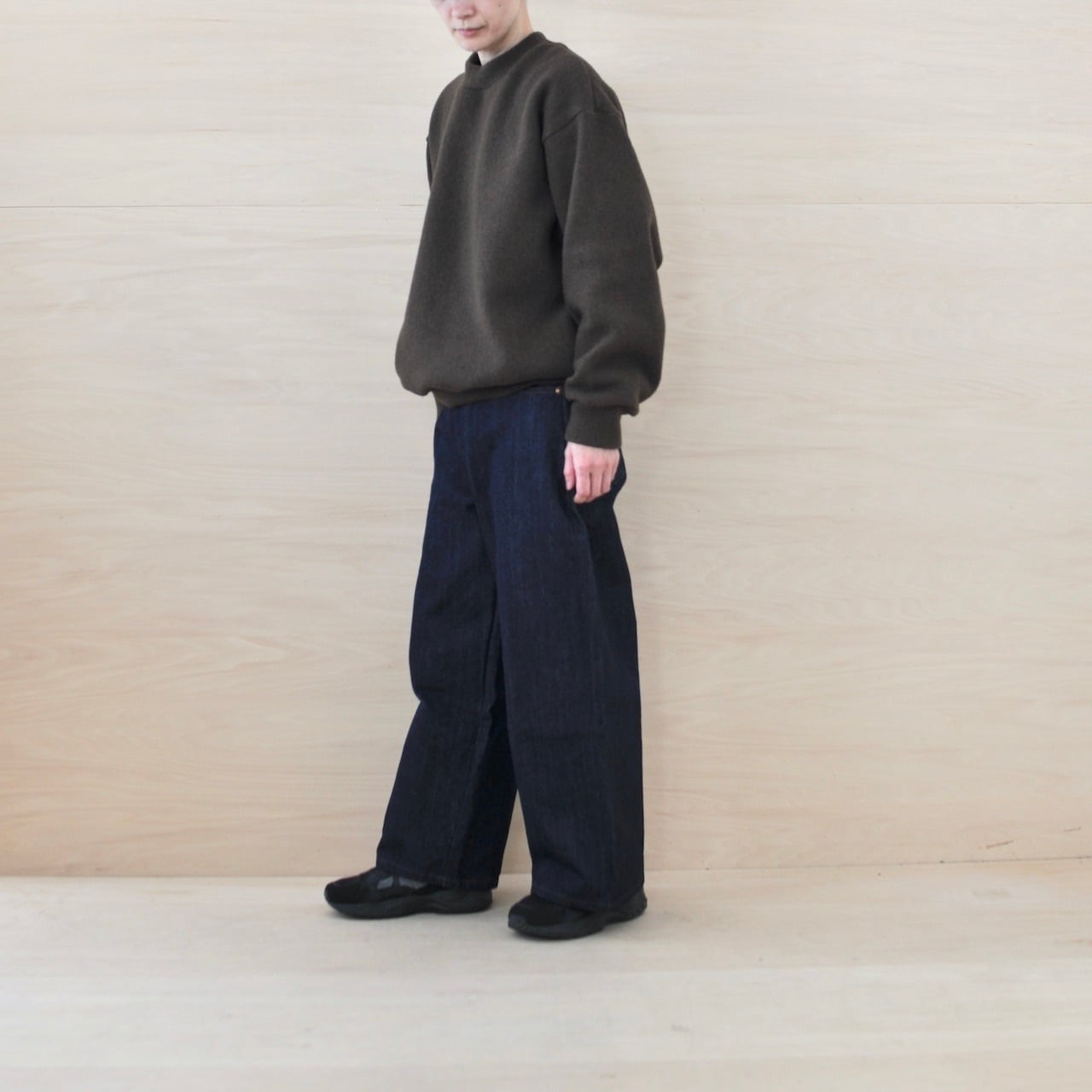 ボリュームのあるダブルフェイスウールニット生地を使用したシンプルでゆったりとしたカットソーを製作。表面はフリースのような起毛があり内側はコットン天竺なため、チクチク感がなく着心地がとてもいいです。あたたかく軽い素材なのでこの冬に活躍してくれそうです。洗濯は中性洗剤を使用し、ネットに入れて手洗いまたはクリーニングでお願い致します。また着用後はウール用ブラシで整えてあげると毛玉防止にもなります。