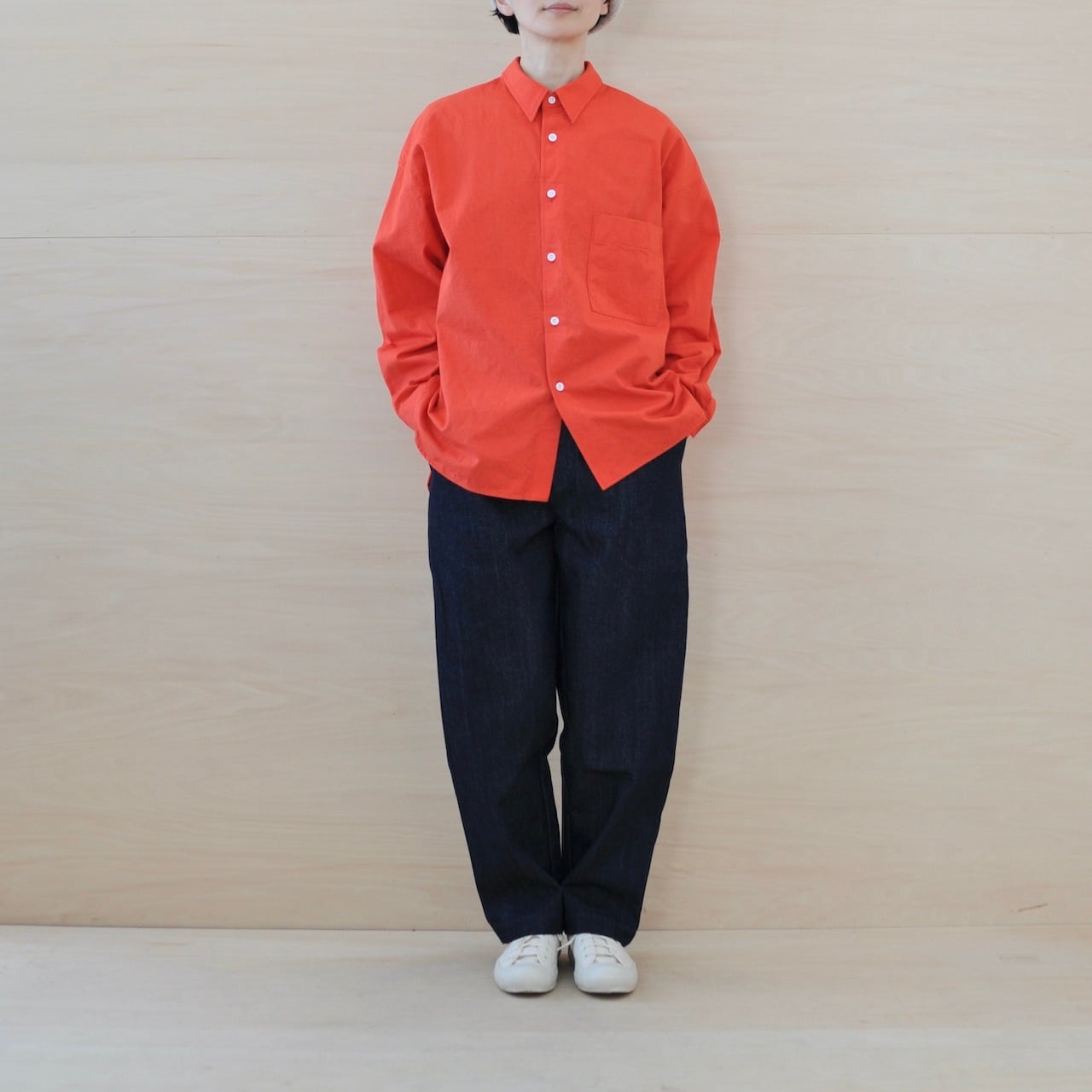 遠州織の鮮やかに染められたツイルコットン生地でシロ.のオーバーサイズシャツを製作しました。70'Sスウェーデン、60'Sアメリカのシャツなどのパターンを見直し組み合わせたシロ. の名刺代わりのようなシャツです。時間をかけておこしたパターンは、襟の大きさや、カフスの収まり、ガゼットの大きさなど細部にもこだわりました。製品洗いを施しておりますので極端な縮みはありません。こちらはSize36のみの展開となります。