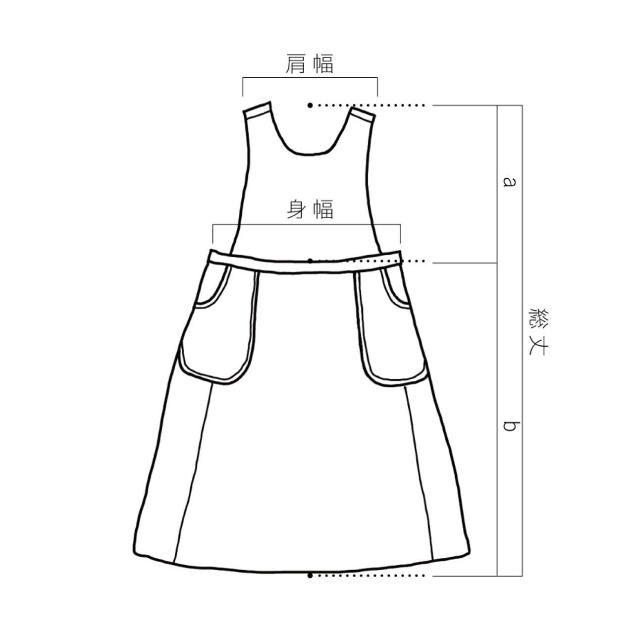 Size F 肩幅 28.5 身幅 48.5 総丈 124 ( a : 43, b : 81 )( 単位 : cm )